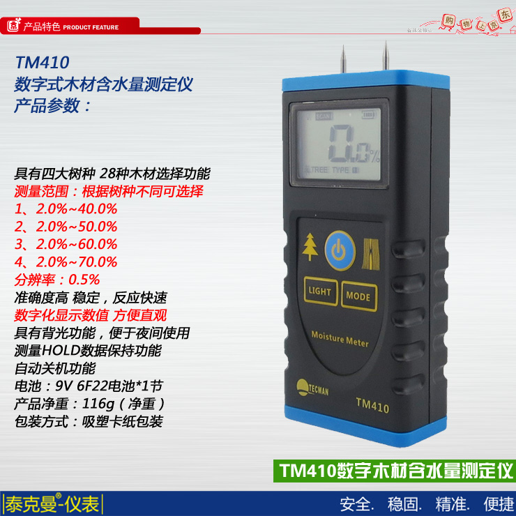 本網頁所展示的有關【TM410數字式木材水分儀|TM-410】的信息/圖片/參數等由的會員【泰克曼-深圳柏萊科技有限公司 】提供,由柏萊儀器網-專業銷售儀器儀表服務商-深圳柏萊科技有限公司會員【泰克曼-深圳柏萊科技有限公司 】自行對信息/圖片/參數等的真實性、準確性和合法性負責,本平臺(本網站)僅提供展示服務,請謹慎交易,因交易而產生的法律關系及法律糾紛由您自行協商解決,本平臺(本網站)對此不承擔任何責任。您在本網頁可以瀏覽【TM410數字式木材水分儀|TM-410】有關的信息/圖片/價格等及提供 【TM410數字式木材水分儀|TM-410】的商家公司簡介、聯系方式等信息。