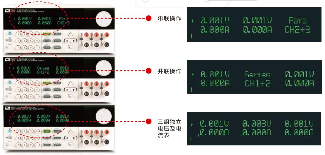 IT6300系列為高性能的可編程三路直流電源,每路輸出電壓和電流均可設定為從0到最大額定輸出值。該系列提供了通道的串聯、并聯以及同步功能,可以給客戶的測試帶來多用途的解決方案。該系列具有1mV/1mA的高分辨率,具有高精度以及高穩定性的特征,并且配備了遠端測量的功能,可以使測試更加準確。內置的標準的USB /RS232/GPIB 通訊接口,大大提升了通訊速度,并且客戶還可以利用光標調節數字步進值來方便操作。