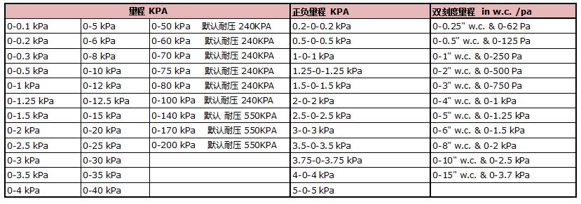 以下常用型號能滿足大部分的應用要求,更多量程可選,請咨詢銷售人員。 對于特殊刻度,如:盎司/平方英寸,英寸汞柱,公制單位等,歡迎咨詢我們。