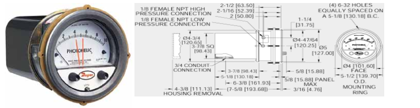Photohelic?開關/表均是結合多功能、高重復壓力開關和精密的并經時間驗證的Magnehelic?設計的差壓表為一體。Photohelic?可以測量和控制空氣和兼容氣體的正壓、負壓和差壓。標準型額定壓力25psig(1.7bar),可選壓力范圍35psig(2.4bar)或80psig(5.5bar)。36000S型只可測量單正壓并可達到6000psig(413bar),其額定值為9000psig(620bar)。