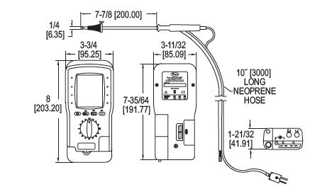 探頭 :11.8?(300 mm)x 0.25?長度(6毫米)直徑為7.8?不銹鋼軸(200毫米)。