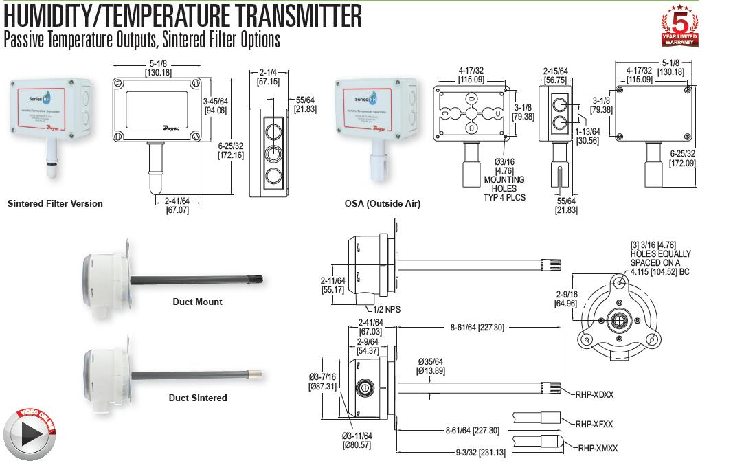 以聚合物電容濕度傳感器為特點,可使用模型2%,3%或5%的精度。