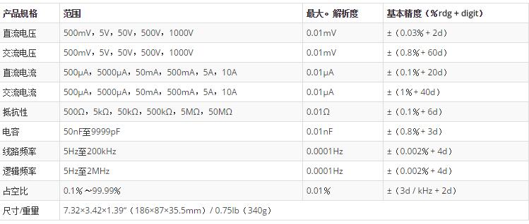 全范圍萬(wàn)用表功能具有0.03%的基本DCV精度和高達(dá)20kHz的True RMS ACV帶寬