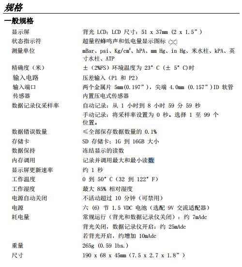 SDL720 型壓力計。該設備測量壓力表和±29 psi 范圍內的壓差。支持的測量單位包括 bar、psi、Kg/cm2、毫米汞柱、英寸汞柱、米水柱、英寸水柱、標準大氣壓力、hPA 及 kPA。記錄的數據讀數保存在 SD 卡中,以便傳輸到 PC。該儀表在交付前均經過完整測試及校準,只要妥善使用,您便可常年享受其可靠服務。