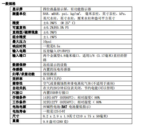 HD750型Extech壓力計?該款設備測量表壓和壓差,精度范圍是+5.000psi? HD750提供11種測量單位(用戶通過面板上的按鈕選擇測量單位),有一個壓差輸入口,采用方便的快速斷開裝置?其他高級功能還包括數據保持,最小值-最大值-平均值記錄模式,歸零/偏移,自動關機和USB PC接口? 該儀表在出廠前完成了全部測試和校準,如精心使用,可提供多年的可靠服務?