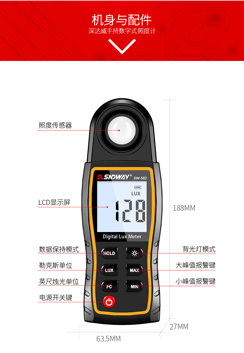 本網頁所展示的有關【深達威 SW-582照度計測光儀高精度數字式光照度儀】的信息/圖片/參數等由的會員【深達威-深圳柏萊科技有限公司 】提供,由柏萊儀器網-專業銷售儀器儀表服務商-深圳柏萊科技有限公司會員【深達威-深圳柏萊科技有限公司 】自行對信息/圖片/參數等的真實性、準確性和合法性負責,本平臺(本網站)僅提供展示服務,請謹慎交易,因交易而產生的法律關系及法律糾紛由您自行協商解決,本平臺(本網站)對此不承擔任何責任。您在本網頁可以瀏覽【深達威 SW-582照度計測光儀高精度數字式光照度儀】有關的信息/圖片/價格等及提供 【深達威 SW-582照度計測光儀高精度數字式光照度儀】的商家公司簡介、聯系方式等信息。