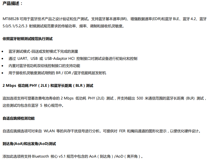 本網頁所展示的有關【MT8852B藍牙測試儀】的信息/圖片/參數等由的會員【日本安立-深圳柏萊科技有限公司 】提供,由柏萊儀器網-專業銷售儀器儀表服務商-深圳柏萊科技有限公司會員【日本安立-深圳柏萊科技有限公司 】自行對信息/圖片/參數等的真實性、準確性和合法性負責,本平臺(本網站)僅提供展示服務,請謹慎交易,因交易而產生的法律關系及法律糾紛由您自行協商解決,本平臺(本網站)對此不承擔任何責任。您在本網頁可以瀏覽【MT8852B藍牙測試儀】有關的信息/圖片/價格等及提供 【MT8852B藍牙測試儀】的商家公司簡介、聯系方式等信息。