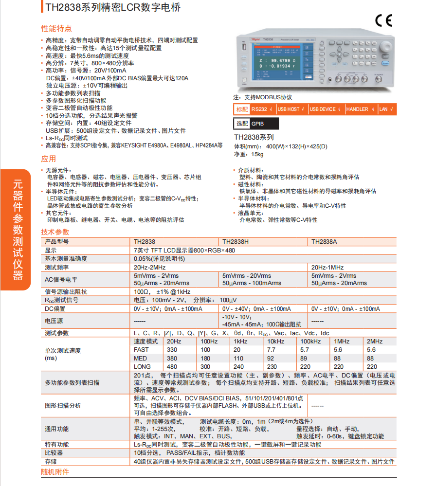 本網頁所展示的有關【TH2838系列精密LCR數字電橋】的信息/圖片/參數等由的會員【同惠電子 -深圳柏萊科技有限公司 】提供,由柏萊儀器網-專業銷售儀器儀表服務商-深圳柏萊科技有限公司會員【同惠電子 -深圳柏萊科技有限公司 】自行對信息/圖片/參數等的真實性、準確性和合法性負責,本平臺(本網站)僅提供展示服務,請謹慎交易,因交易而產生的法律關系及法律糾紛由您自行協商解決,本平臺(本網站)對此不承擔任何責任。您在本網頁可以瀏覽【TH2838系列精密LCR數字電橋】有關的信息/圖片/價格等及提供 【TH2838系列精密LCR數字電橋】的商家公司簡介、聯系方式等信息。